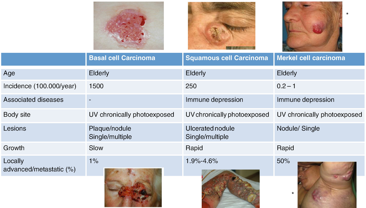 skin cancer is best defined as the abnormal growth of skin cells, often due to too much sun exposure, but there are other factors to consider also. cancers of the skin are also known as cutaneous cancers or dermatological cancers. Over 60,000 people in the uk develop a bcc or scc each year. Basal cell carcinoma, squamous cell carcinoma, and melanoma. Bunkers fee for this review has been donated to the british skin foundation (bsf), a charity committed to research into skin research including skin cancer. (bcc is the most common type of cancer of all.) they are rare in children. Precancerous conditions of the skin have the potential. Like basal cell cancer, it often starts in areas of skin exposed to the sun, such as the face, head, neck, arms, and hands. The deadliest form of skin cancer. skin cancers can be divided into two main groups: Squamous cell carcinoma, also known as squamous cell cancer, is the second most common type of skin cancer. This is a cancer of the keratinocyte cells which are in the outer layer of the skin. Frequently develops in a mole or suddenly appears as a new dark spot on the skin.